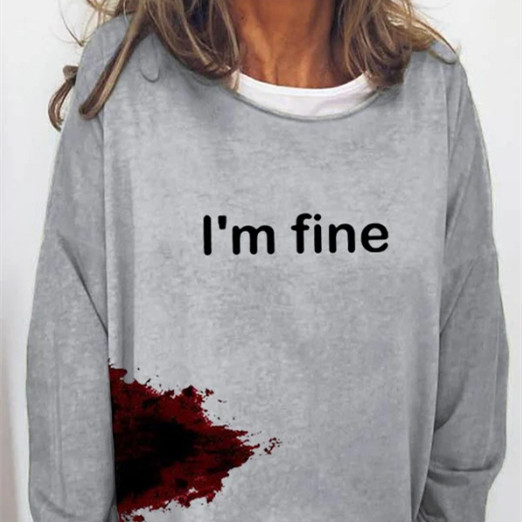 Women's Simple Round Neck Long Sleeve Printed Loose Sweatshirt